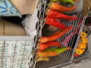 It is fun, the holidays are coming faster than we think, and again September usually means we have a bounty that we need to figure out what to do with...so this cool idea is both pragmatic and adds a fun pop of color to your fall decor. Imagine natures Christmas lights in September!!! Hanging peppers to dry is a good way to help preserve your extras for winter meals and if you dry them in some strategic places, you can add some whimsical decor to your fall motif!